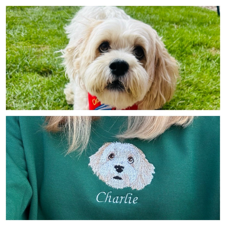 from 1 reviewsI bought my wife this sweatshirt with our two dogs embroidered on the front and she was delighted. The owner was so kind and when she found out we lived nearby she hand delivered the item to my shop. Absolutely fabulous service and superb product.