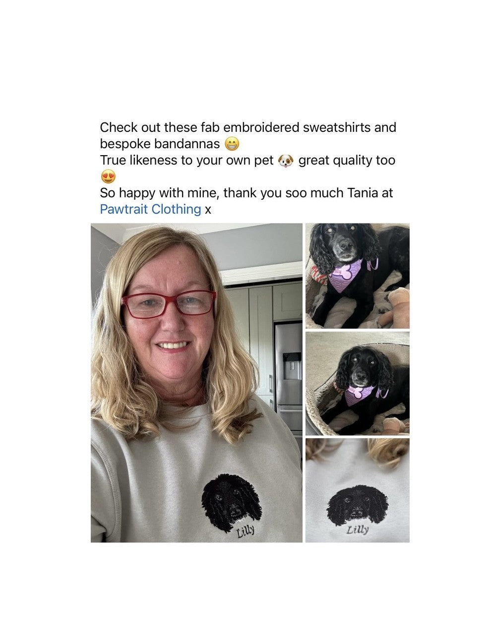 Check out Sarah's review of her opal organic sweatshirt. Personalised with her adorable dog Lilly.